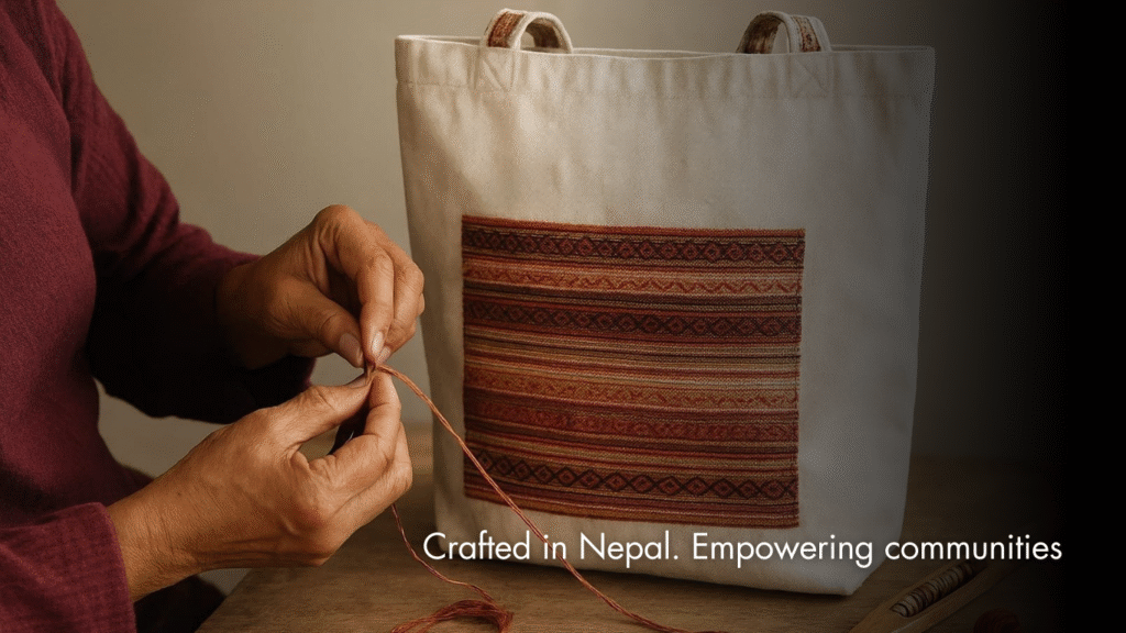 In a small workshop in Nepal, the solution is emerging as vibrant Gheri tote bags, stylish bamboo bottles, and gentle Dhaka lanyards. These aren’t mass-produced in distant factories. Instead, local artisans stitch and craft each piece with care, giving every product a unique story. At the heart of it all is Samsara, a brand that is redefining the standards of merchandise in Nepal.